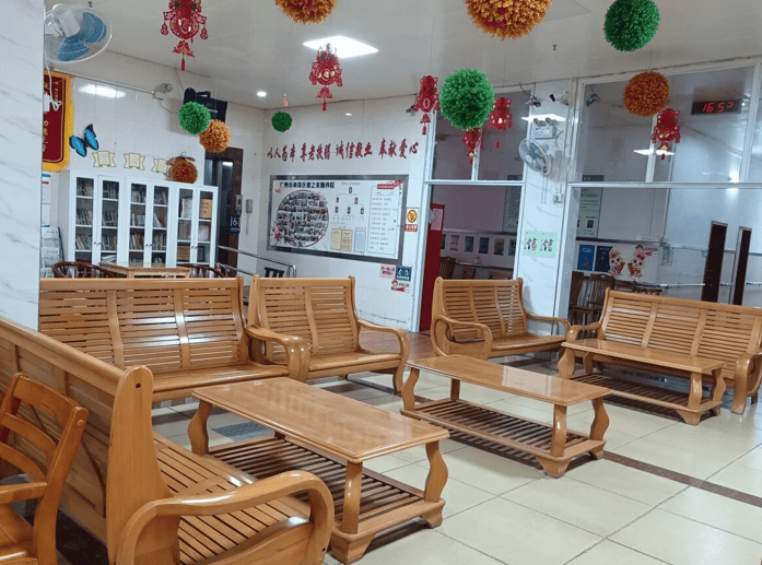 机构以适老化为核心,打造全方位安全舒适的居住环境。房间内均配备独立卫生间、冷热水供应系统、适老化家具及智能呼叫按钮,卫生间采用防滑地砖与扶手设计,有效降低跌倒风险;公共区域设置双层扶手、低位操作面板及清晰的安全标识,电梯与通道均符合轮椅通行标准,保障行动不便长者的出行安全。值得一提的是,机构拥有1000平方米的天台花园,绿化覆盖率达40%,划分种植区、散步道与观景台,长者可在此栽种蔬果、漫步休憩,既契合广州长者喜爱园艺的习惯,又能享受珠江畔的自然景致。此外,机构还设有书画阅览室、棋牌室、茶艺室及多功能厅等功能区域,满足长者多元休闲需求。