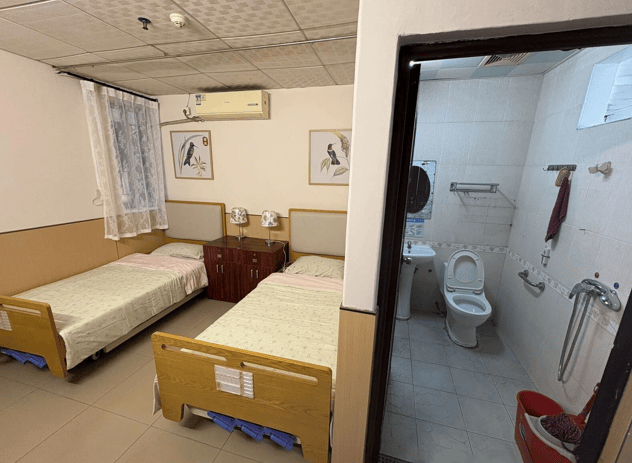 走进金玉养老院的房间,处处体现着贴心与关怀。所有房间均配备独立卫浴、中央冷热水系统、空调、彩电、床头呼叫系统。卫浴区安装了L型扶手、防滑地胶、紧急呼叫按钮,为长者的安全保驾护航。家具采用圆角设计,避免长者磕碰;床头灯配备夜光开关,方便长者夜间使用;衣柜内嵌可调节层板,满足不同收纳需求;床体高度适配轮椅转移,尽显人性化。