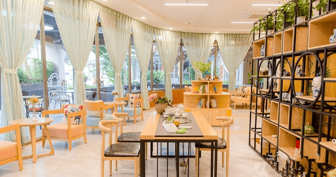 高森林覆盖率还带来了宜人的气候条件。树木能够调节气温,降低噪音,减少空气污染。在炎热的夏季,家长荟内的气温比市区要低几度,让人感觉凉爽舒适;而在冬季,树木又能阻挡寒风的侵袭,起到保暖的作用。同时,树木的枝叶能够吸收和反射声音,减少外界噪音的干扰,为长者们创造一个安静、舒适的居住环境。在这里,长者们可以远离城市的喧嚣和污染,享受大自然的恩赐,过上健康、舒适的生活。