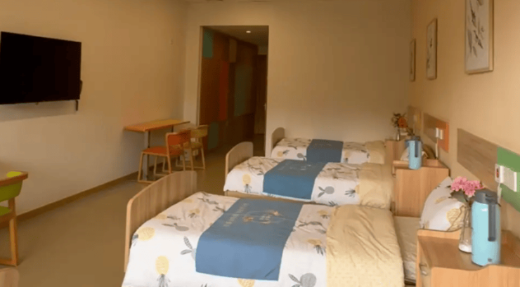 分院经营面积约23000平方米,规划床位800余张,涵盖单人间、双人间及3-6人房多种房型,适配不同居住需求。单人间面积25-35平方米,配备独立观景阳台;双人间采用分床设计,保障隐私与陪伴需求;多人房注重空间利用率,提供基础舒适配置。全院床位布局合理,人均使用面积优于行业标准,为长者提供充足活动与休憩空间。