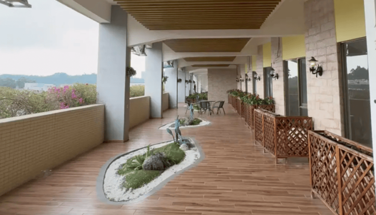 依托麓湖景区生态资源,院内构建起沉浸式自然康养环境,空气中负氧离子浓度常年保持较高水平,堪比天然氧吧。1500平方米空中休闲农场与岭南园林景观相映,打造可赏可游的户外空间。公共区域采用暖色调装修,搭配圆角家具、防滑地胶、感应夜灯等适老化设计,走廊宽度与无障碍通道坡度均符合专业标准,兼顾安全与舒适度。