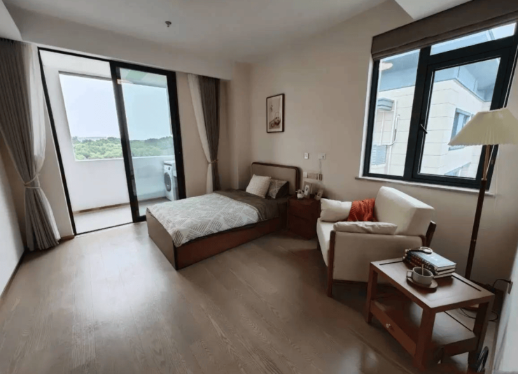建筑内部通过大面积落地窗设计,确保每间居室自然采光。单人间配备独立阳台,双人间及多人间增设公共观景窗,让长者“推窗见绿、移步换景”。