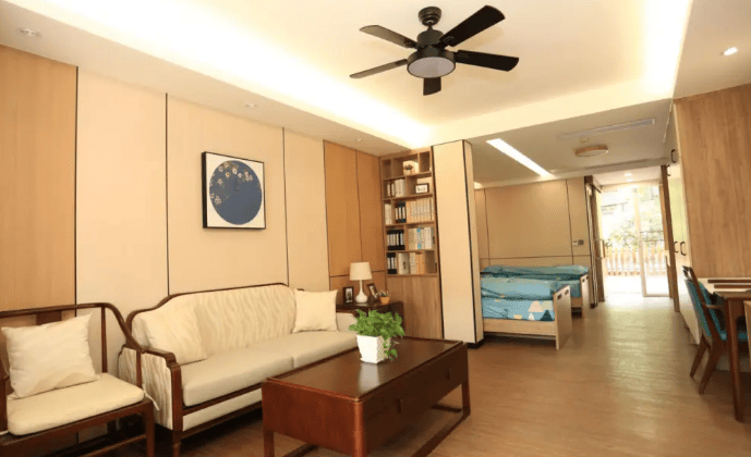 父亲有轻微的认知障碍,总忘记关水龙头、走错房间,这是我最担心的。在松鹤的认知症专区,我注意到所有门把手都是横向的(避免长辈误以为是扶手用力拉),走廊转角处贴着老广州街景的照片(陈姐说:“阿伯阿婆看到熟悉的场景,会减少焦虑。”),连洗手间的镜子都被移到了侧面——“有些长辈照镜子会认不出自己,产生恐慌,这样设计能避免。”