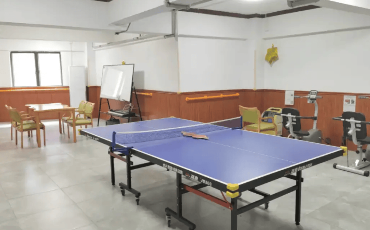 机构打造了丰富的公共空间,满足长者社交与活动需求。800平方米的屋顶花园延续岭南园林元素,设置休憩凉亭与园艺活动区,长者可在此休闲观景、参与绿植养护;200平方米的多功能厅配备专业音响灯光系统,可容纳百余人参与集体活动;图书阅览室藏书超5000册,涵盖历史、文学、养生等多个领域,还配备电子阅读屏,适配不同阅读习惯;智慧棋牌室则为长者提供了益智休闲的社交选择。