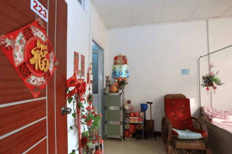 其空间规划采用“四区联动”模式,将有限空间的功能发挥到极致。生活服务区提供单人至多人五种房型选择,所有房间均配备独立卫浴、适老化家具、智能呼叫系统及冷热水供应系统。单人房注重私密性,双人房与多人房通过隔音设计、分区储物柜等细节兼顾经济性与舒适度。房间内允许长者携带家庭照片、收藏品等装饰空间,营造“家”的温馨感。