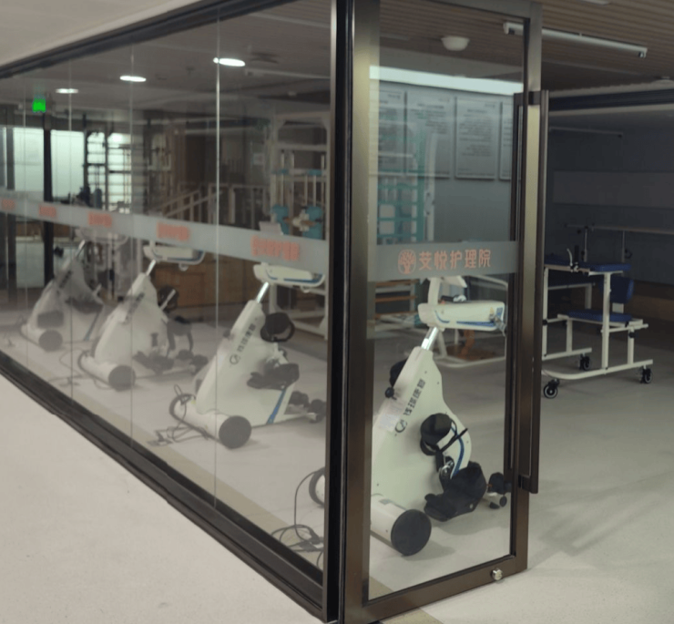 除居住区域的精细化设计外,芠悦护理院在公共区域与安全设施的规划上同样坚守无障碍原则。公共区域全程保障无障碍通行,宽阔的通道、平缓的坡道设计,适配轮椅、助行器等辅助工具的使用,让行动不便的长者能够自主穿梭于各个功能区域;安全设施则渗透于空间的每一处细节,除居住区域的紧急呼叫装置外,公共区域的防滑地面、清晰的标识指引、应急照明系统等,从通行安全、视觉识别、突发应对等多维度筑牢防护,全方位规避安全风险。