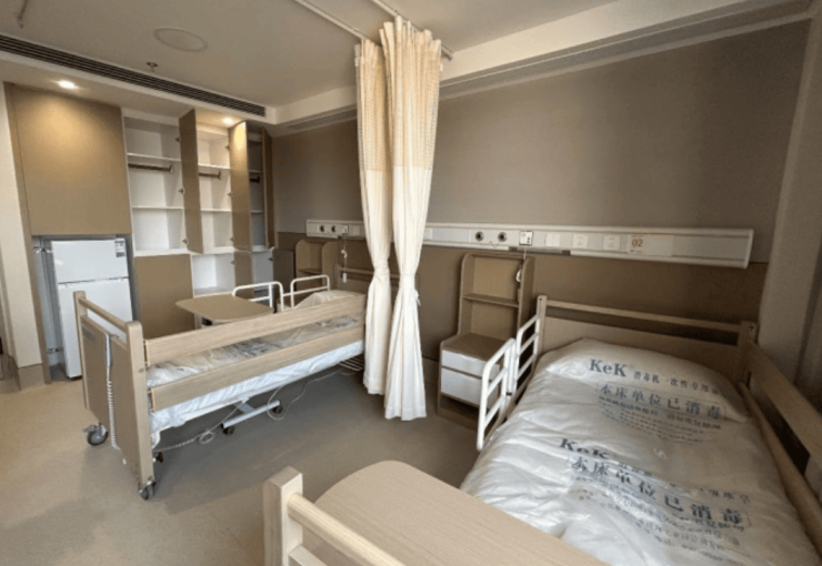 护理院开放床位600余张,主打两人房和三人房。房间的户型布局经过精心设计,十分合理。宽敞明亮的空间,温馨舒适的装修风格,既为长辈们营造了家的氛围,又能满足多人照护陪伴的需求。