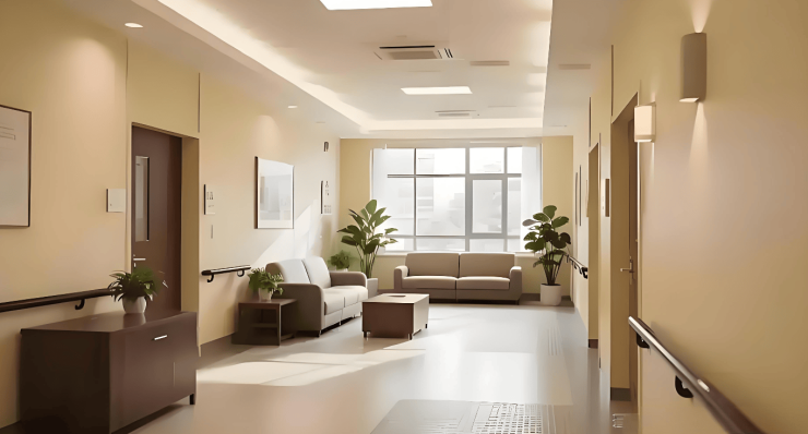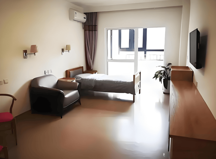 项目总建筑面积3893.46平方米,规划116张床位,采用“核心筒+辐射状”布局,外立面融合新中式风格与农耕文化元素,走廊悬挂粮票、农具等老物件形成记忆回廊。居住单元涵盖单人间、双人间及多人间:单人间25-35㎡配备独立卫浴、智能护理床及毫米波雷达跌倒监测手环;双人间35-45㎡采用分床独立控制系统;多人间40-50㎡增设集中供氧系统与隐私帘。公共区域配置VR康复设备、3D打印工作坊及智能健身镜,医疗康复区配备DR影像系统、德国MOTOmed下肢康复机器人及三维步态分析系统,构建“15分钟生态圈+15分钟生活圈”的立体化适老空间。