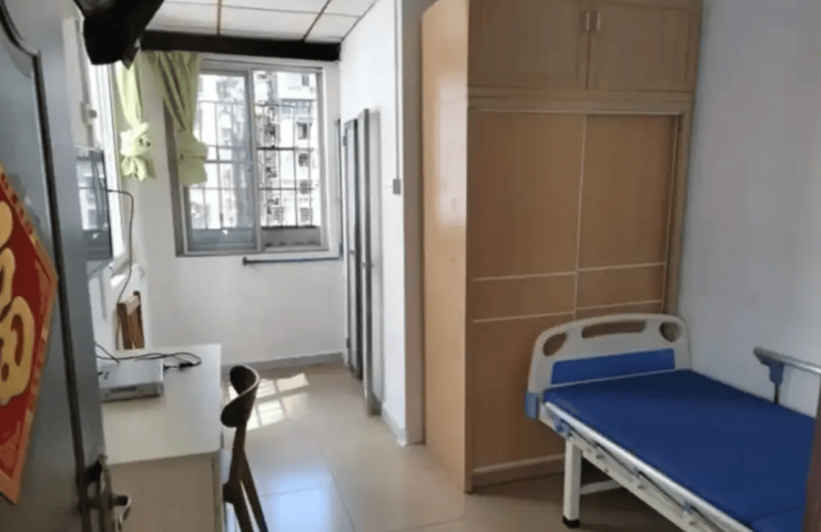 机构建筑面积达1.2万平方米,规划床位200余张,设置单人间、双人间及家庭套房三大类房型,适配不同居住需求。单人间面积32-55平方米,空间开阔通透;双人间面积25-40平方米,兼顾隐私与陪伴;家庭套房面积达55平方米,支持三代同堂短时同住。全屋遵循适老化设计,地面铺设高防滑PVC地板,家具采用圆角处理,客房配备独立卫浴、智能呼叫系统与夜间自动亮灯装置,全方位保障长者起居安全。