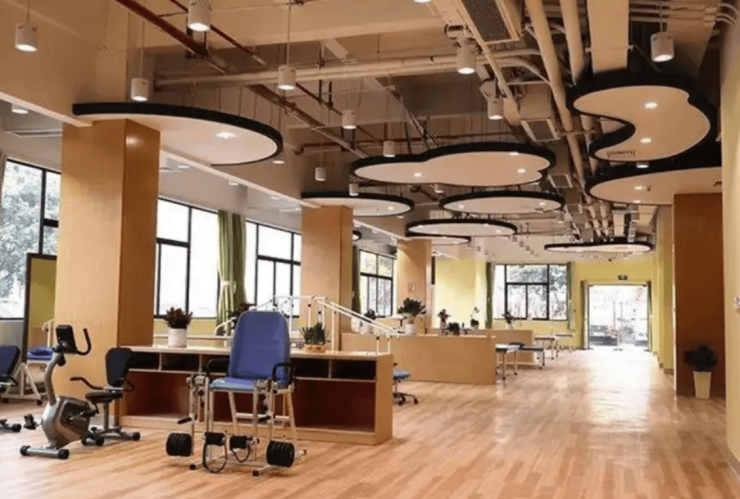 康复花园内配置平行杠、训练阶梯等器材,将自然休憩与日常锻炼场景有机融合。一楼喷泉池与四楼露天花园构成垂直景观轴,种植四季花卉形成天然氧吧。长者可在花香中散步、在绿荫下静坐,或参与园艺活动,感受自然与生命的律动。这种“疗愈式”环境设计,不仅提升了居住品质,更让长者在亲近自然的过程中滋养身心。
