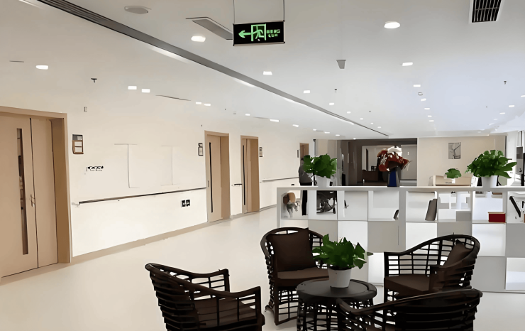 中心总建筑面积5000平方米,规划床位130-150张,采用“回”字形围合式布局,灰砖白墙仿古外观与田园风光浑然一体。单人间25-40㎡配备独立卫浴、智能护理床及毫米波雷达跌倒监测系统;双人间30-40㎡采用隐私隔断设计,配置共享阳台与分体空调;多人间15-25㎡设适老化家具与智能药盒分发机。全楼宇铺设R13级防滑地胶,走廊宽度≥1.8米并安装双侧扶手,实现“零高差”通行。公共区域配置康复室、图书室、多功能活动厅,引进德国智能康复机器人、平衡训练仪等设备,满足长者康复需求。全院部署2000个智能传感器,实时监测长者活动轨迹及生命体征,异常数据3秒内推送至护理终端与家属APP。