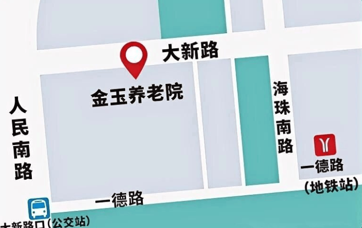 金玉养老院坐落于广州市越秀区大新路419号,地处人民南路历史文化街区与海珠广场商圈交汇处,周边生活配套极为完善。这里毗邻上下九广场、北京路步行街等商业中心,超市、银行、公园等设施一应俱全,满足长者购物、休闲、社交等多元化需求。