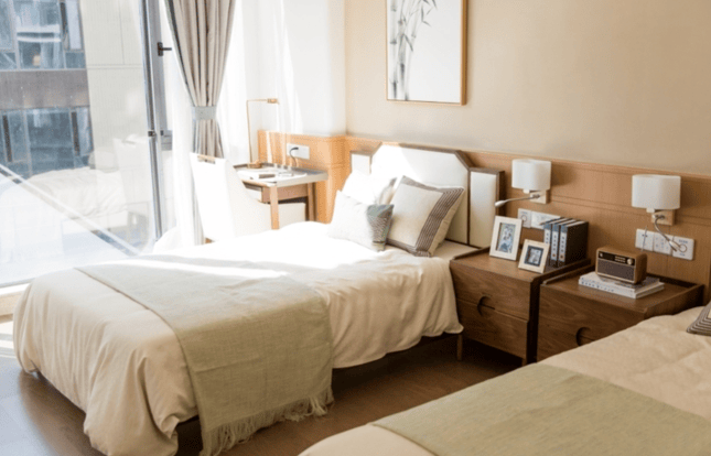 中心总建筑面积2.63万平方米,分为活力型公寓(A塔)与照护型公寓(B塔),提供四大房型。单人间面积40 - 58平方米,独立卫浴、智能家居系统及紧急呼叫装置一应俱全,为追求隐私的长者打造专属空间。双人间面积40 - 60平方米,共享起居与独立卫浴,性价比高且能满足社交需求。套间面积80 - 105平方米,独立厨房、阳台及智能家居系统,适合家属陪护或短期居住,满足不同长者的居住渴望。