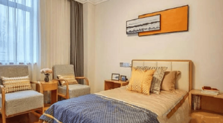 居住空间:全屋地暖、防滑地板、圆角家具,单人间面积不低于20㎡,配备独立阳台与紧急呼叫按钮,家庭套房更设迷你厨房与会客区,满足“三代同堂”探望需求;