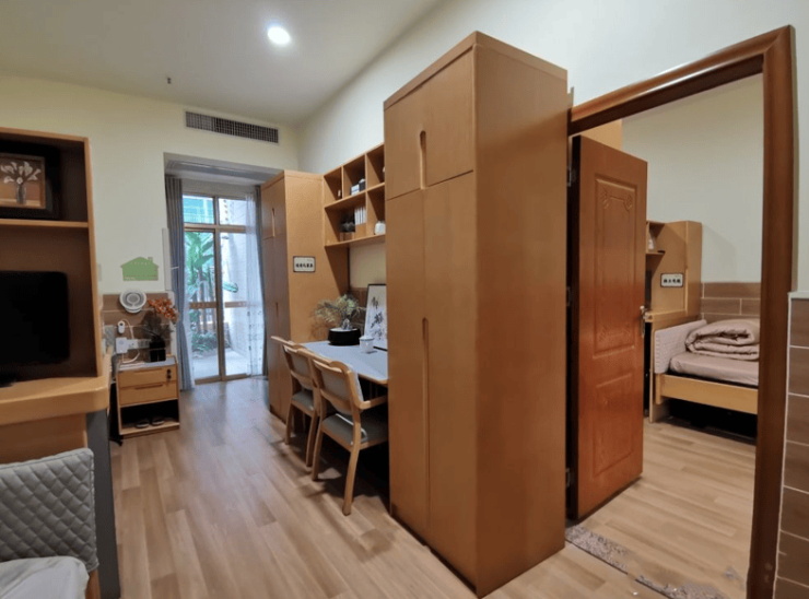 养老院总建筑面积达2.8万平方米,规划床位550张,涵盖四大房型。单人间面积30 - 35平方米,私密舒适,适合追求独立空间的高知长者;双人间分床设计,兼顾隐私与经济性;家庭套房面积88平方米,可满足三代同堂短期探视的需求;认知症专区采用“家庭化”设计,为认知障碍长者打造安全舒适的环境。