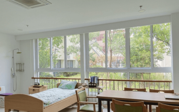 单人间面积为25㎡,配置医用级供氧接口、智能家电及适老化家具,为长者提供了一个安全、舒适、便捷的居住空间,费用在4400—6000元/月;双人间35㎡,设有观景飘窗与隐私隔断,还配备了24小时新风系统,让长者在享受美景的同时,也能呼吸到清新的空气,费用在3450—5000元/月;多人间40㎡,通过独立储物空间与公共活动区设计,满足了经济型需求,费用在3450—4500元/月。长者们可以根据自己的经济状况和居住需求,选择适合自己的房型。