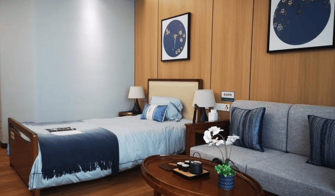 养护院占地面积8000平方米,总建筑面积达2.5万平方米,规模适中且布局合理。机构内绿树成荫,花草繁茂,营造出宁静宜人的氛围。房型有单人间(25 - 35㎡)和双人间(40 - 50㎡)两种,均采用南北通透设计,配备独立阳台,保证充足的自然采光与良好通风。房间内暖色调装修搭配柔和灯光,温馨感十足。