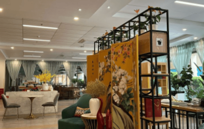 在8000平方米的空间里,独立庭院与蜿蜒步道相接,形成了一个充满诗意的园林景观。四季花卉在园林中次第绽放,春有紫藤垂帘,那一串串紫色的花朵如瀑布般垂下,美不胜收;夏有荷花映日,粉色的荷花在碧绿的荷叶中亭亭玉立,散发着阵阵清香;秋有丹桂飘香,金黄色的桂花挂满枝头,香气扑鼻,让人陶醉其中;冬有腊梅傲雪,在寒风中独自绽放,展现出坚韧不拔的精神。长者们漫步在园林中,欣赏着四季的美景,感受着大自然的变幻,心情也变得格外舒畅。
