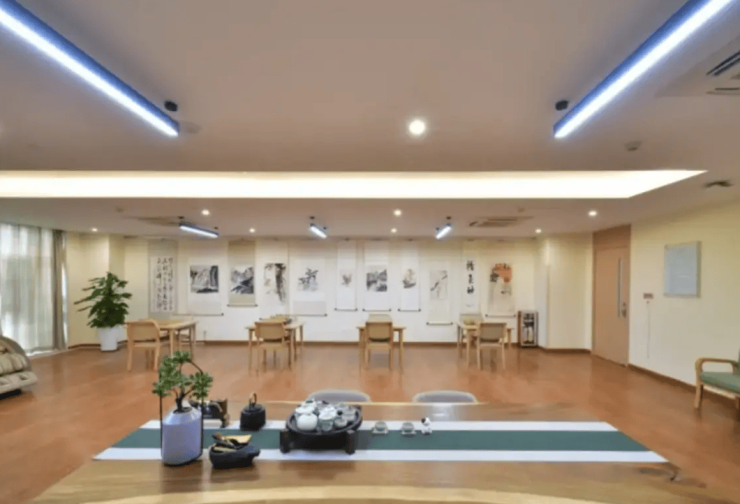 所有房间均采用全屋圆角设计、感应夜灯、无障碍卫浴系统,细节处保障长者安全。公共区域设有恒温泳池(配备适老化扶手)、体感游戏室(引入VR运动设备)、光影疗愈室(通过智能灯光调节改善睡眠质量),以及棋牌室、书画室、岭南非遗传承工作室等文化娱乐设施,年均举办活动超200场。