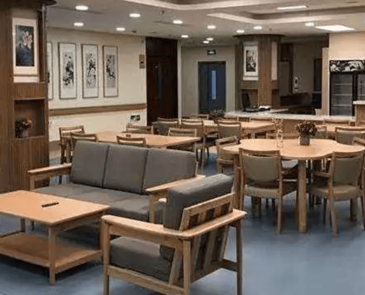 在床位类型规划上,机构以三人间和四人间为主,这种房型配置既兼顾了照护服务的效率,又考虑了患者的居住成本与社交需求。三人间、四人间的布局能够让患者在居住期间相互陪伴、交流,缓解孤独感,同时也便于护理人员集中开展照护服务,提升响应效率,实现了居住体验与照护效率的平衡。