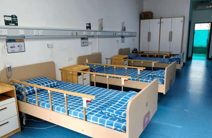 院区总建筑面积1.3万平方米,规划床位500张,采用“居住—公共—服务”三区分离的科学布局。居住区域涵盖单人间、双人间、套房及认知症专区四种房型,单人间面积28—45平方米,双人间28—35平方米,套房60—80平方米,可满足不同长者的居住需求。所有房间均配备电动护理床、智能马桶、独立新风系统,采用防滑地板、L型扶手、夜光标识等42项适老化设计,同时搭载紧急呼叫系统与智能手环,全方位保障居住安全。