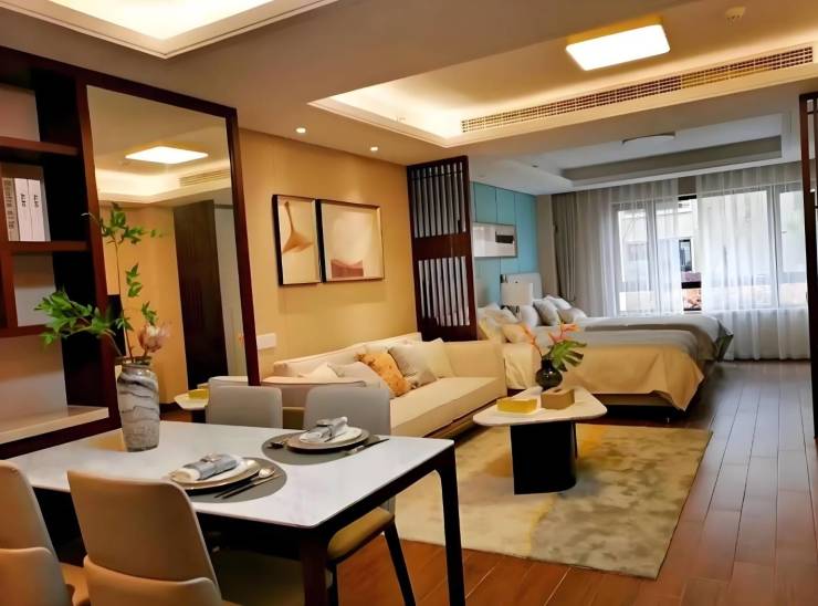 公寓采用居家式布局和适老化装修,处处体现对老年人的关怀。360度可伸缩式水龙头方便老年人使用;符合老年人体工程学的家具,让老年人坐卧更加舒适;低拉开关轻触设计,避免老年人因伸手过高而摔倒;防滑地面则有效降低老年人滑倒受伤的风险,全方位确保老年人的居住安全。