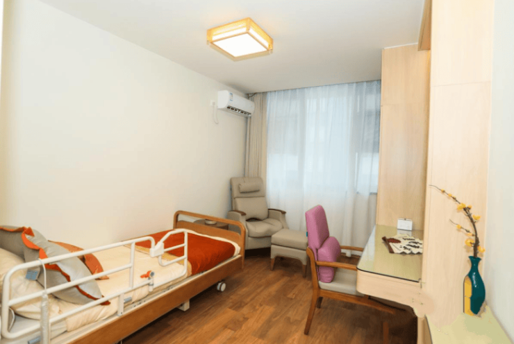 居住空间:单人间面积16—30平方米,配备日本进口电动护理床、智能床垫及独立卫浴;双人间采用分区储物柜设计,共享会客区;家庭套房含独立厨房、阳台及适老化餐桌,支持三代同堂短期陪护。所有房间均采用圆角家具、防滑地板、双层扶手及24小时紧急呼叫系统,智能温控设备与无障碍卫浴设施确保长者起居安全便捷。