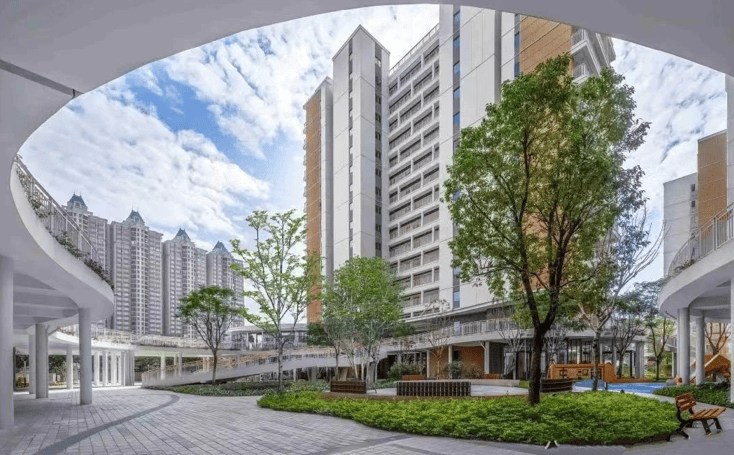 全周期居住空间:突破传统养老机构平面布局,悦麓居采用“垂直康养社区”理念,将居住、医疗、商业、景观功能整合于地下3层至地上22层的复合型建筑中。社区规划3栋活力公寓、1栋养护院及1栋护理院,提供40 - 80平方米单间至套房共325套,可容纳超1200名长者居住,满足不同长者的居住需求。