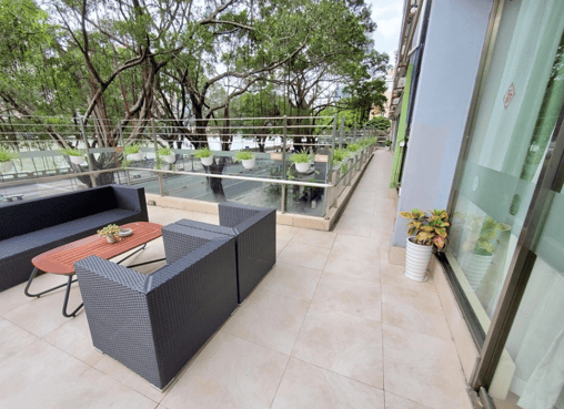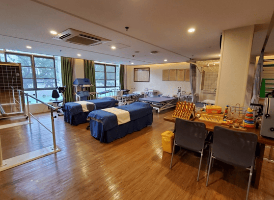 1-2层为生活公区,设有书画室、音乐室、手工坊及500平方米屋顶花园。花园内种植广藿香、广陈皮等岭南药材,既是自然教育课堂,也是长者晒太阳、交流的“空中客厅”。3-8层为居住区,顶层增设空中花园,无障碍步道蜿蜒穿过绿植区,为长者提供亲近自然的空间。此外,机构还配备1200平方米康复大厅及多媒体室,满足长者康复训练与娱乐需求。