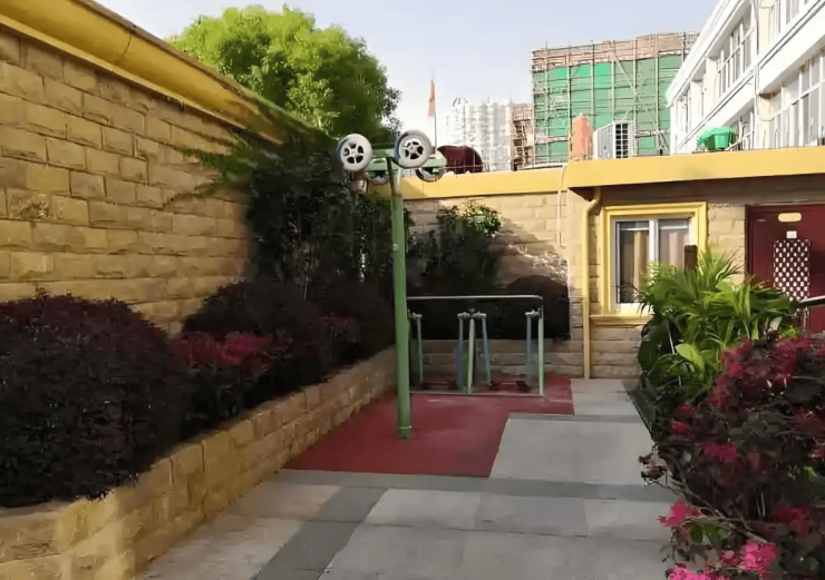 在生态环境打造上,敬老院更是独具匠心。与桃浦中央绿地、真如公园直线距离不足800米,这些大型户外绿地为长者提供了绝佳的休闲去处,闲暇时前往公园散步、观景、呼吸新鲜空气,既能锻炼身体,又能舒缓心情。同时,院内专门规划了中央庭院,绿植繁茂、环境雅致,形成“院内小花园+院外大公园”的生态闭环。这种“出则繁华、入则静谧”的布局,让敬老院不再是孤立的养老场所,而是真正融入社区生活的“枢纽”,让长者在便捷享受城市资源的同时,也能拥有静谧舒适的康养空间。