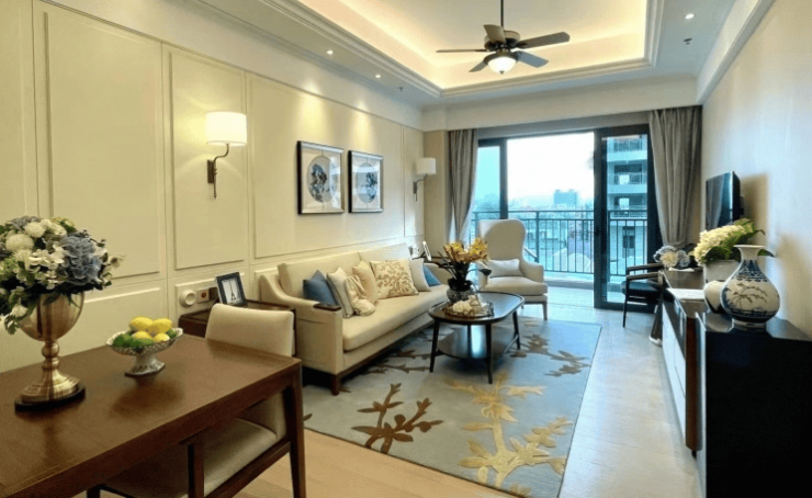 全屋采用圆角家具、防滑地砖、无高差门槛,卫生间配备助浴椅与扶手。单人间面积45㎡起,双人间60㎡,均设独立阳台与新风系统。
