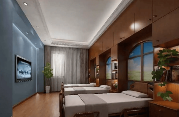 双人间:20-30㎡,两张护理床间距1.5米,月费5000元/人起;