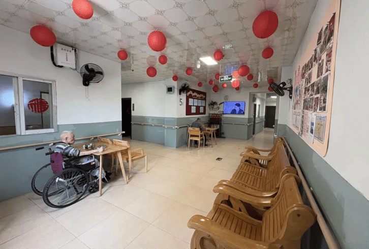 3600平方米的六层建筑内,186张床位分为经济型多人房、标准双人间、豪华单人间及失智专区。房间内独立卫浴配备L型扶手、防滑地胶与紧急呼叫按钮,中央冷热水系统与空调确保四季舒适;床头夜光开关、圆角家具、可调节层板衣柜等设计,兼顾实用性与安全性。失智专区采用柔和色调与低刺激装饰,通过记忆盒子、怀旧照片墙等元素唤醒长者记忆,减少空间迷失感。一位参观者感慨:“这里的每一处细节,都像家人一样贴心。”