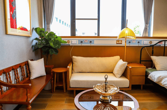 走进登峰园的房间,第一感觉是“熟悉”——没有刺眼的白墙,而是暖黄色的墙漆;没有冰冷的金属扶手,而是木质的“隐形”扶手(藏在衣柜边、床头柜旁);连洗手池都是“适高设计”,避免阿婆弯腰时闪到腰。