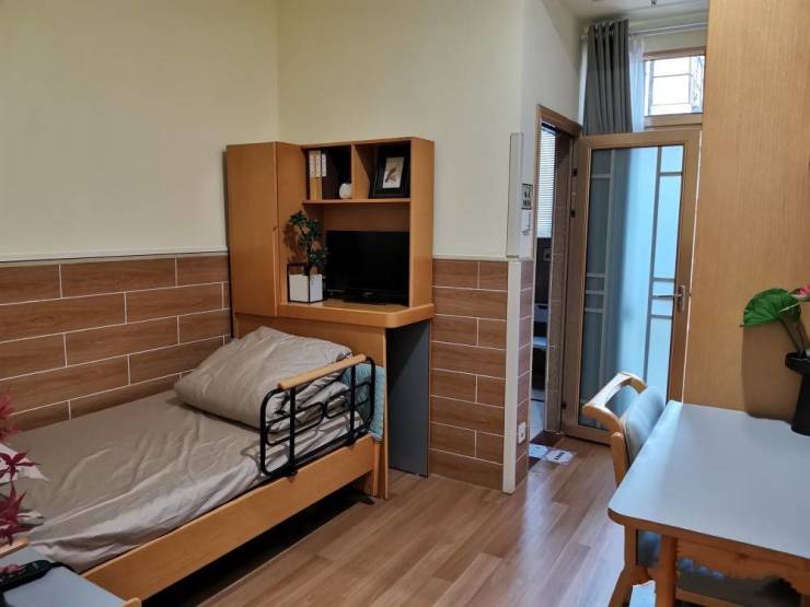 单人间面积在30 - 35平方米之间,空间宽敞舒适。房间内配备了独立卫浴,方便长者日常洗漱;智能马桶的使用,提升了使用的便利性和舒适度;护理床能够根据长者的身体状况进行调节,为他们的休息提供更好的支撑;阳台则为长者提供了一个亲近自然、享受阳光的空间;紧急呼叫系统的设置,让长者在遇到紧急情况时能够及时求救。这种房型适合追求私密性的高知长者,他们可以在自己的独立空间里享受宁静的晚年生活。