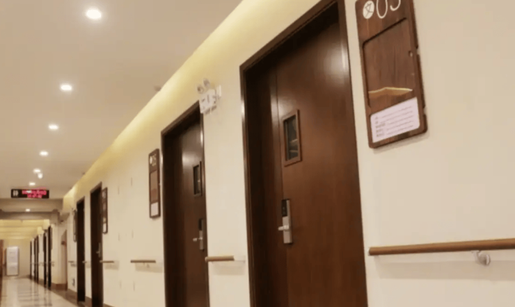 总建筑面积8000平方米的建筑群内,规划298张床位,涵盖单人间(35-45㎡)、双人间(25-35㎡)及家庭套房(60-80㎡)三种户型。所有房间通过无障碍设计认证,融入40余处适老化细节:圆角家具防止磕碰、防滑地胶降低跌倒风险、智能夜灯自动感应起夜需求、毫米波雷达跌倒监测系统实现24小时安全守护。公共区域同样功能完备:1200㎡康复大厅配备专业训练设备,3000㎡空中花园设无障碍步道与药用植物种植区,多媒体室、图书阅览室、棋牌室等文化空间满足多元精神需求。