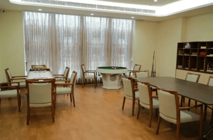 中心总建筑面积3.8万平方米,规划410张床位,涵盖单人间、双人间及套间三种房型,面积从25㎡至80㎡不等。全屋采用42项适老化细节设计:防滑地胶、助力扶手、弧形边角家具将跌倒风险降低58%;独立卫浴配备智能温控系统,单人间增设毫米波雷达跌倒监测仪;套间配置会客区与适老化厨房,满足长者社交与自主生活需求。公共区域规划5500平方米功能空间,包括书画室、KTV练歌房及多媒体影院,日均举办书法、园艺、合唱等活动超3场,形成“居住-社交-娱乐”的完整闭环。