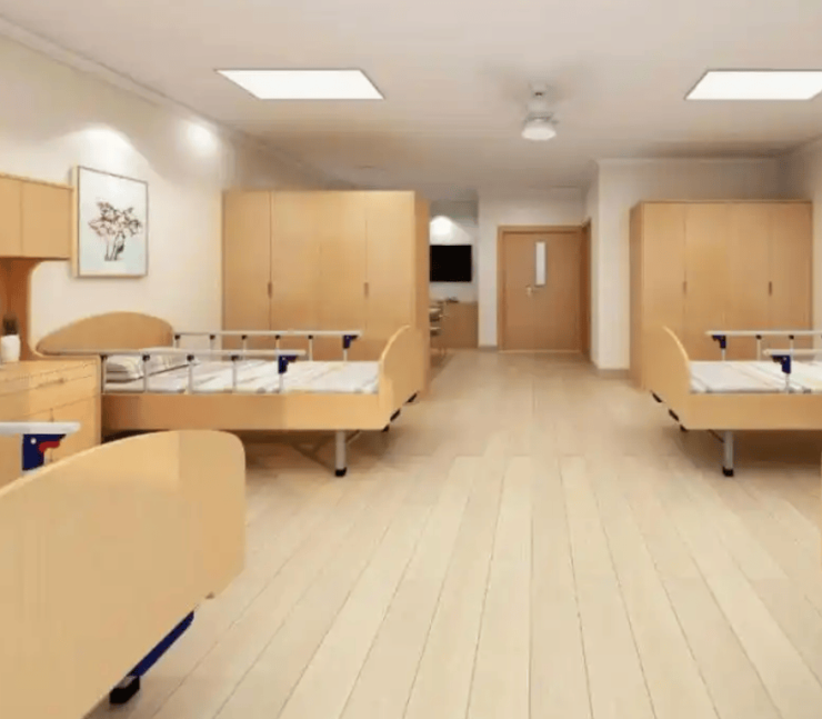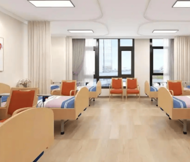 所有居住单元均严格遵循适老化原则,细节之处尽显对长者的关怀与呵护。房间内的家具全部采用圆角防撞处理,从根源上降低了长者碰撞受伤的风险;卫浴区专门配置了L型扶手,为长者起身、洗漱提供稳定支撑,搭配恒温淋浴系统,避免水温骤变对长者肌肤造成刺激,同时地面铺设的防滑地胶摩擦系数达0.6以上,有效提升行走安全性。不同房型也各具特色,单人间配备独立新风系统,时刻保持室内空气清新,还配有智能马桶提升使用便捷性;双人间及多人间采用南北通透设计,确保日均6小时以上的充足日照,让房间内始终温暖明亮、空气流通。