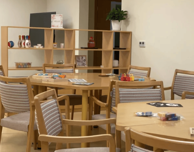 养护院总建筑面积达9839平方米,充足的空间规模为多元服务功能的落地提供了坚实基础。机构由六栋小高层建筑群组合而成,这种布局摒弃了传统养老机构密集型建筑的局促感,不仅能保障每栋建筑都拥有良好的采光与通风条件,更让院内空间层次丰富、视野开阔。合理的建筑规划既实现了不同功能区域的有效分隔,避免相互干扰,又通过便捷的连廊或通道实现区域间的紧密衔接,为长者的居住、活动与服务流转提供了舒适且高效的空间保障。