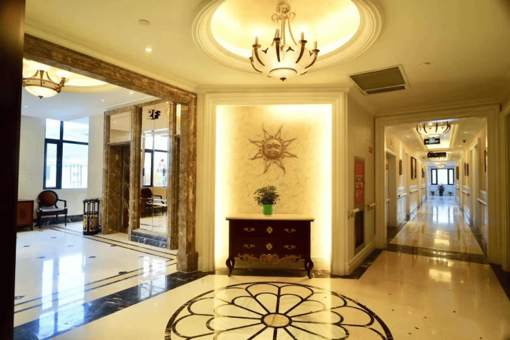 护理区域涵盖全护理型、舒适型及豪华型房间,有双人房、三人房及多人房可选。所有居室设独立卫生间,配备电子呼叫系统。院内还有医务室、康复室、娱乐室、阅览室、棋牌室等多功能空间,以及视频安全监控系统和消防喷淋系统等智能化设施。