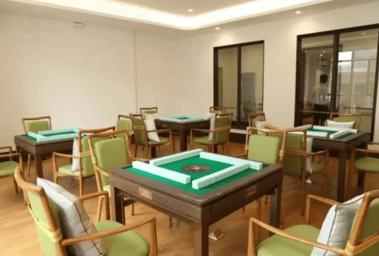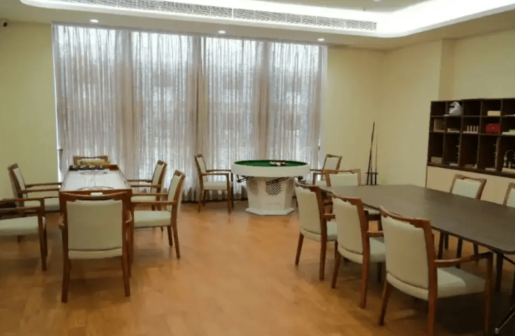 中心总建筑面积3.8万平方米,规划床位410张,以“小街区、密路网”理念划分功能区域。居住空间提供单人间(25-45㎡)、双人间(35-55㎡)及套间(60-80㎡)三种房型,均配备独立卫浴、智能温控系统及三重紧急呼叫保障(拉绳报警+手环定位+AI跌倒监测)。公共区域涵盖5500平方米功能空间,包括多功能活动室、书画室、KTV练歌房及多媒体影院,日均举办书法班、园艺班等活动超3场。屋顶花园设有500㎡空中香草种植区,长者可参与薄荷、罗勒等作物培育;岭南文化馆定期展示广绣、茶艺等非遗技艺,长者大学开设粤语课、智能手机班,年均培养“银龄达人”超500名。