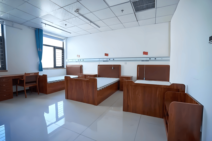 中心总建筑面积2万平方米,绿化覆盖率超40%,规划床位800张,实际开放500张,涵盖自理区、护理专区、认知症照护单元及安宁疗护区四大功能区。建筑采用无障碍设计,地面铺设高防滑系数地胶,走廊宽度≥1.8米,双侧安装L型扶手;卫生间采用零高差设计,配备折叠助浴椅及恒温花洒。居住空间包括单人间(30-60㎡独立卫浴)、双人间(环保隔断共享观景阳台)及家庭套房(60㎡含独立厨房),均配备智能呼叫系统、电动护理床及氧气接口。公共区域设有2000㎡中心花园、图书馆、健身房、影音厅及屋顶菜园,屋顶步道种植月季、绣球等10种适老植物,PM2.5浓度常年低于35μg/m³。