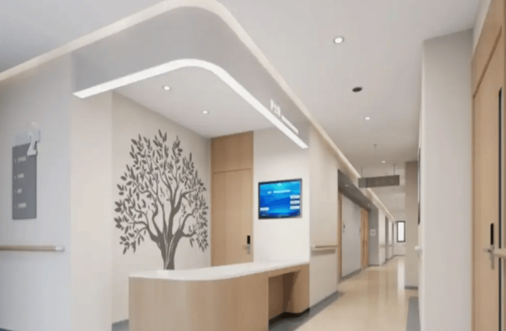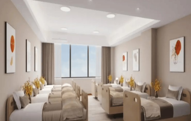 居住区域以双人间为主,占比达93%,辅以少量三人间,兼顾居住舒适度与社交需求。每间客房均配备专业护理床、智能马桶、独立空调及新风系统,营造温馨舒适的居住氛围。全楼采用防滑地板铺设,走廊宽度达1.8米,轮椅坡道坡度严格控制在1:12以内,墙面转角安装防撞条。床头的紧急呼叫装置与公共区域的24小时监控形成立体安全网络,全方位消除安全隐患。
