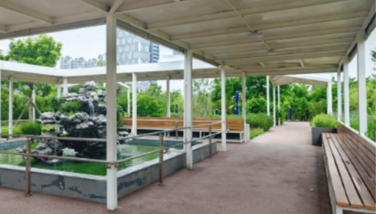 公寓内部同样注重绿化和景观设计,精心打造了四大适老化立体式花园。内庭院是长者休闲散步的好去处,绿植环绕,花草繁茂,长者可以在这里漫步赏景,感受大自然的美好。三楼的平台花园为长者提供了一个开阔的户外空间,他们可以在这里晒太阳、聊天,享受悠闲的时光。顶楼的空中花园则像是一个城市中的世外桃源,站在这里可以俯瞰城市的美景,同时又能呼吸到清新的空气。康复花园则是专门为需要康复的长者设计的,园内设置了各种康复设施,长者可以在欣赏美景的同时进行康复训练。