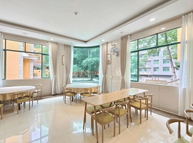 养老院还十分注重公共空间的打造,设有棋牌室、阅览室、茶艺室、乐器室、音乐舞蹈厅等休闲娱乐场所。长者们可以在棋牌室里与朋友切磋棋艺,在阅览室里沉浸在书的世界里,在茶艺室里品味茶香,感受传统文化的魅力。