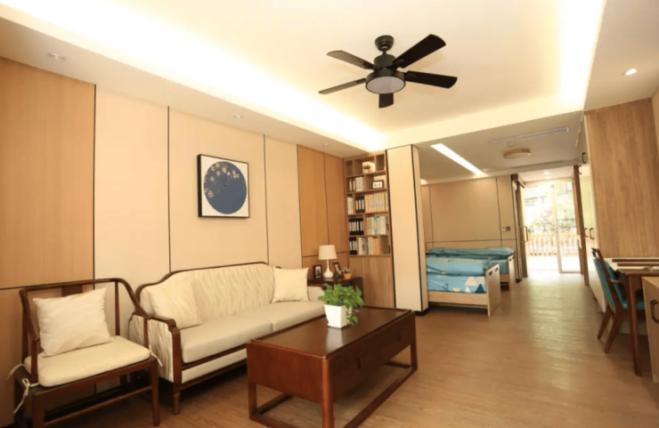 除了优越的地理位置,松鹤养老院在环境设计上也独具匠心。机构以“一轴三园”景观设计将岭南园林元素融入养老空间,营造出一种古朴、典雅的氛围。建筑密度控制在28%以下,为长者提供了宽敞的公共活动空间,不会让人感到压抑。绿化率超40%,满眼的绿色让长者仿佛置身于大自然之中,呼吸着清新的空气,感受着生命的美好。