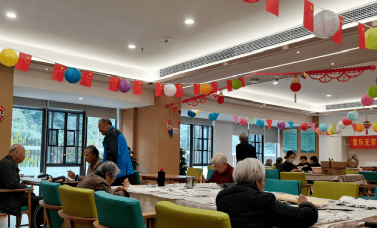 养老院注重长者的精神文化生活,打造了丰富的文娱空间。500 平方米的活动中心涵盖了书画室、手工艺室、影视厅等多个功能区域。书画室内笔墨纸砚一应俱全,长者可以在这里挥毫泼墨,展现自己的书法绘画才华;手工艺室提供了各种手工材料,长者可以发挥自己的创意,制作出精美的手工艺品;影视厅则定期播放经典电影和热门电视剧,让长者享受视听盛宴。养老院藏书超 5000 册,为喜欢阅读的长者提供了丰富的精神食粮。