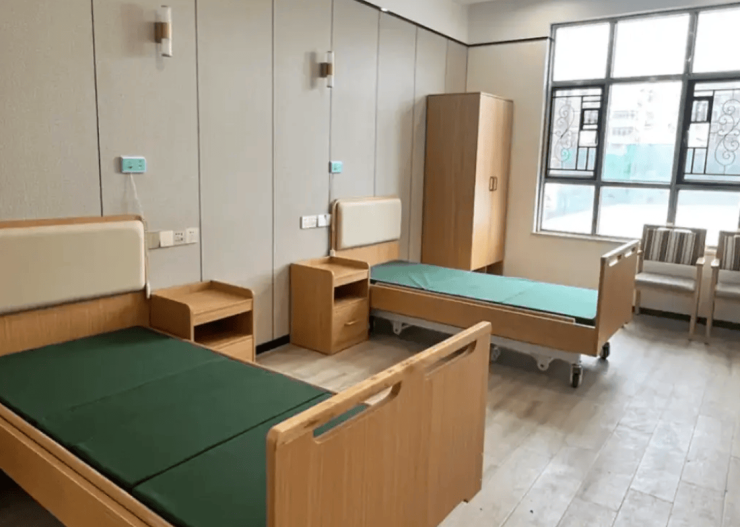 中心内部空间遵循无障碍设计理念,全方位保障长者生活安全。122张普惠型养老床位涵盖单人间、双人间及双人套间,房型面积30至50平方米不等,每间均配备智能护理床、独立卫生间与恒温空调。床头紧急呼叫按钮与中央照护系统实时联动,卫生间采用防滑地板与低位洗手台,走廊宽度达1.8米,电梯内设低位按钮与语音提示,细节之处尽显人文关怀。