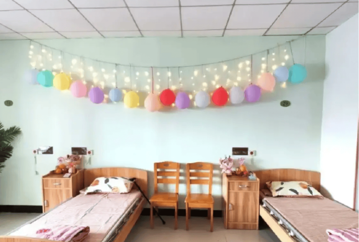 家具配置:环保材料制作,边角圆润处理;独立卫生间配备L型扶手、恒温花洒及折叠座椅;床头设置紧急呼叫装置,确保紧急情况快速响应。