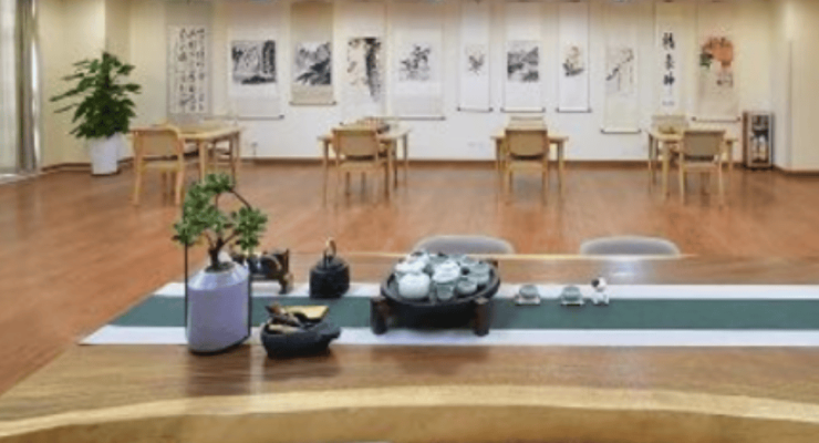全中心采用隐形适老化设计,智能设施自然融入环境:房间配备环境监测与智能控制系统,公共区域设置无感跌倒监测与电子围栏,康复区引入智能康复设备。同时保留充足的公共社交空间、书画茶艺室及屋顶花园,确保科技应用不削弱人际互动与自然接触。